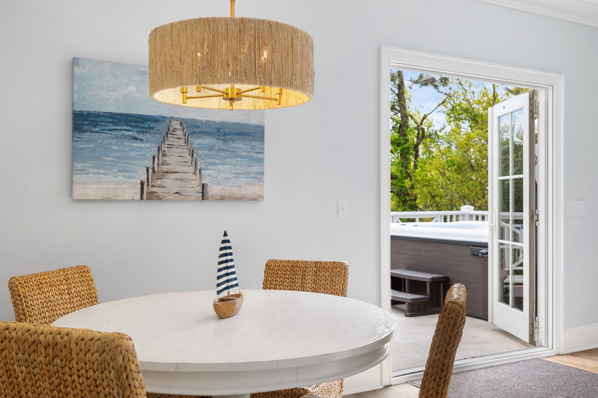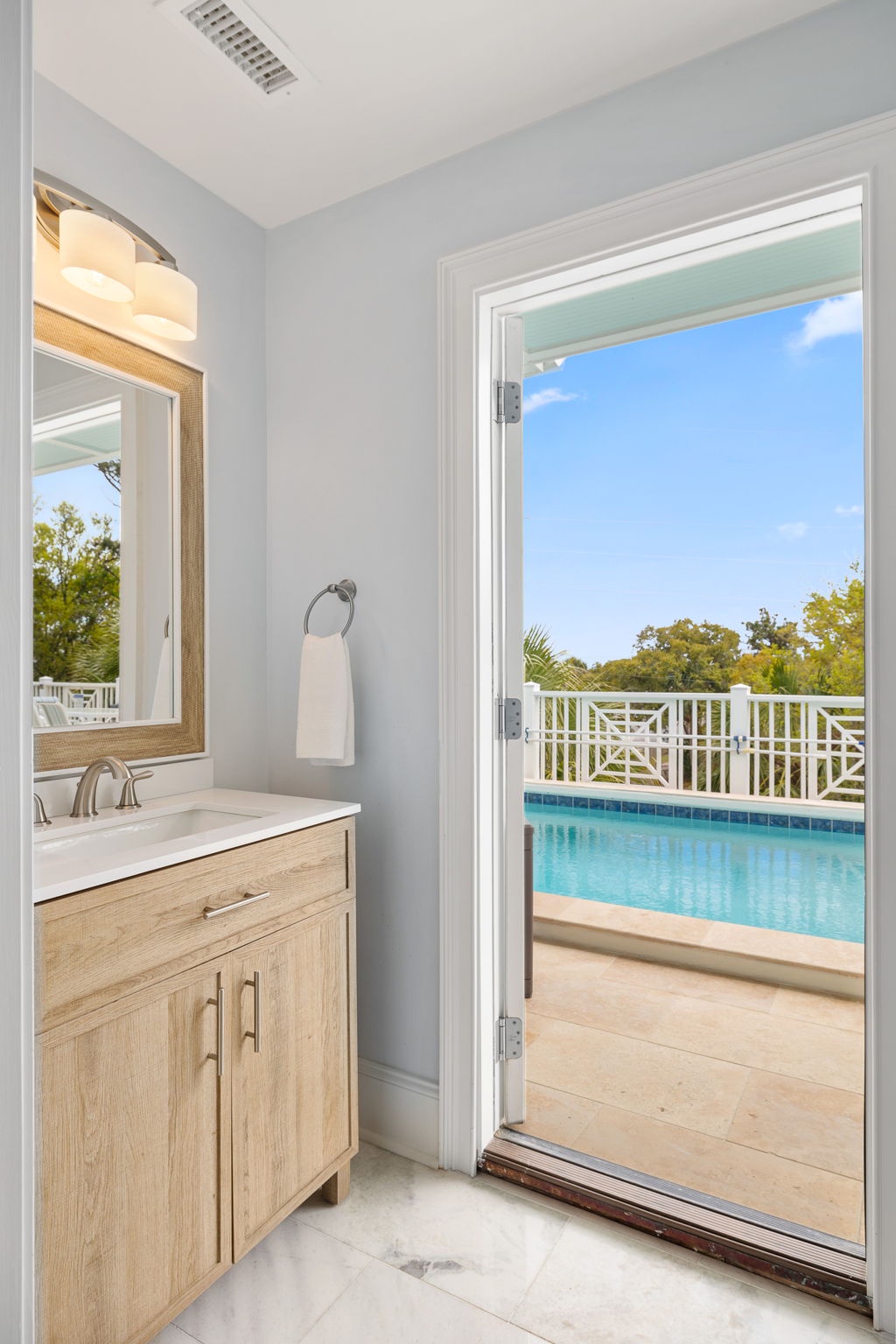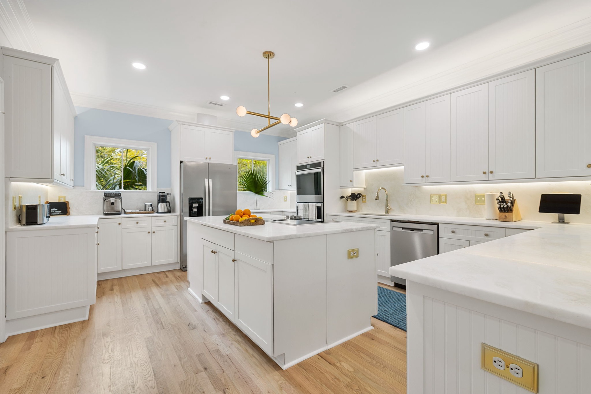 Mornings begin with your choice of espresso, coffee pot, or Keurig before an easy walk to the beach. Afternoons are spent poolside, lounging on the travertine deck, or enjoying the outdoor wet bar. Evenings unwind with music through the integrated Sonos system, a soak in the hot tub, and time together under the stars.
