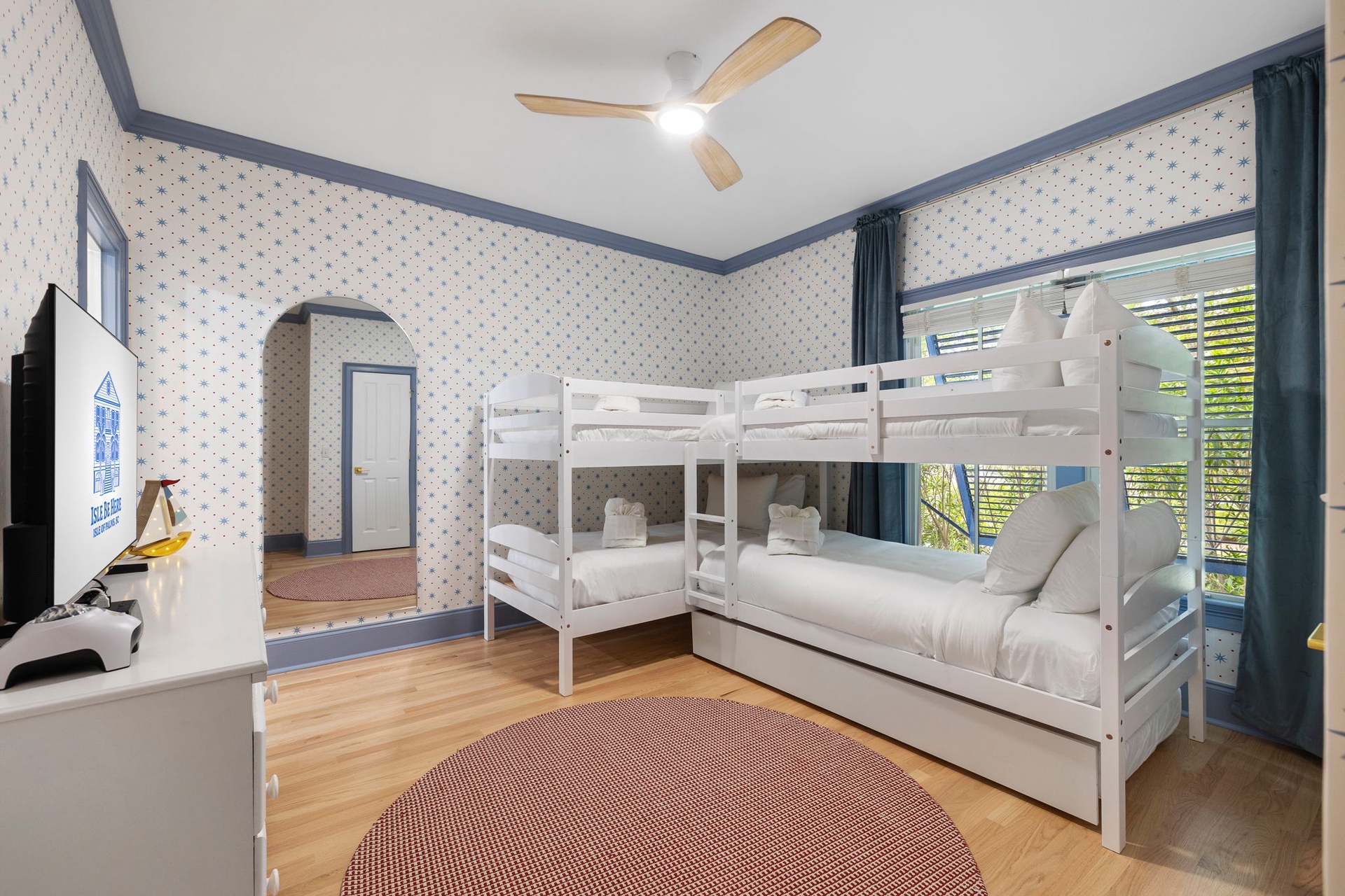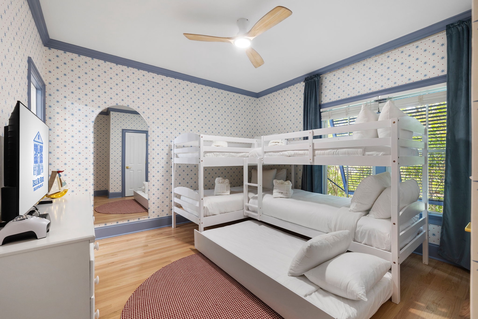 • Twin Bunk Beds (2x) with a single trundle