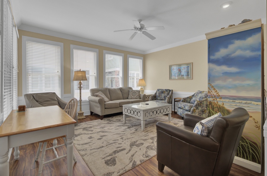 Boardwalk at Grand Pavilion features colorful townhomes centrally located along the scenic beach boardwalk, providing direct access to the main beach entry. Just steps from dining, pools, and tennis, with golf only minutes away by shuttle or car, this 2445 Sq. Ft home offers a seamless blend of beachside energy and relaxed living.