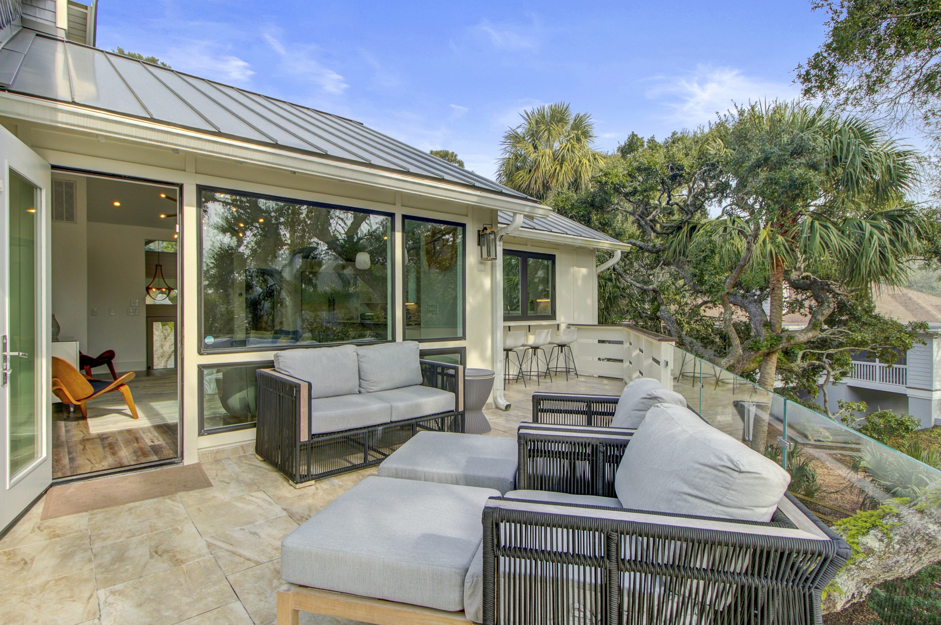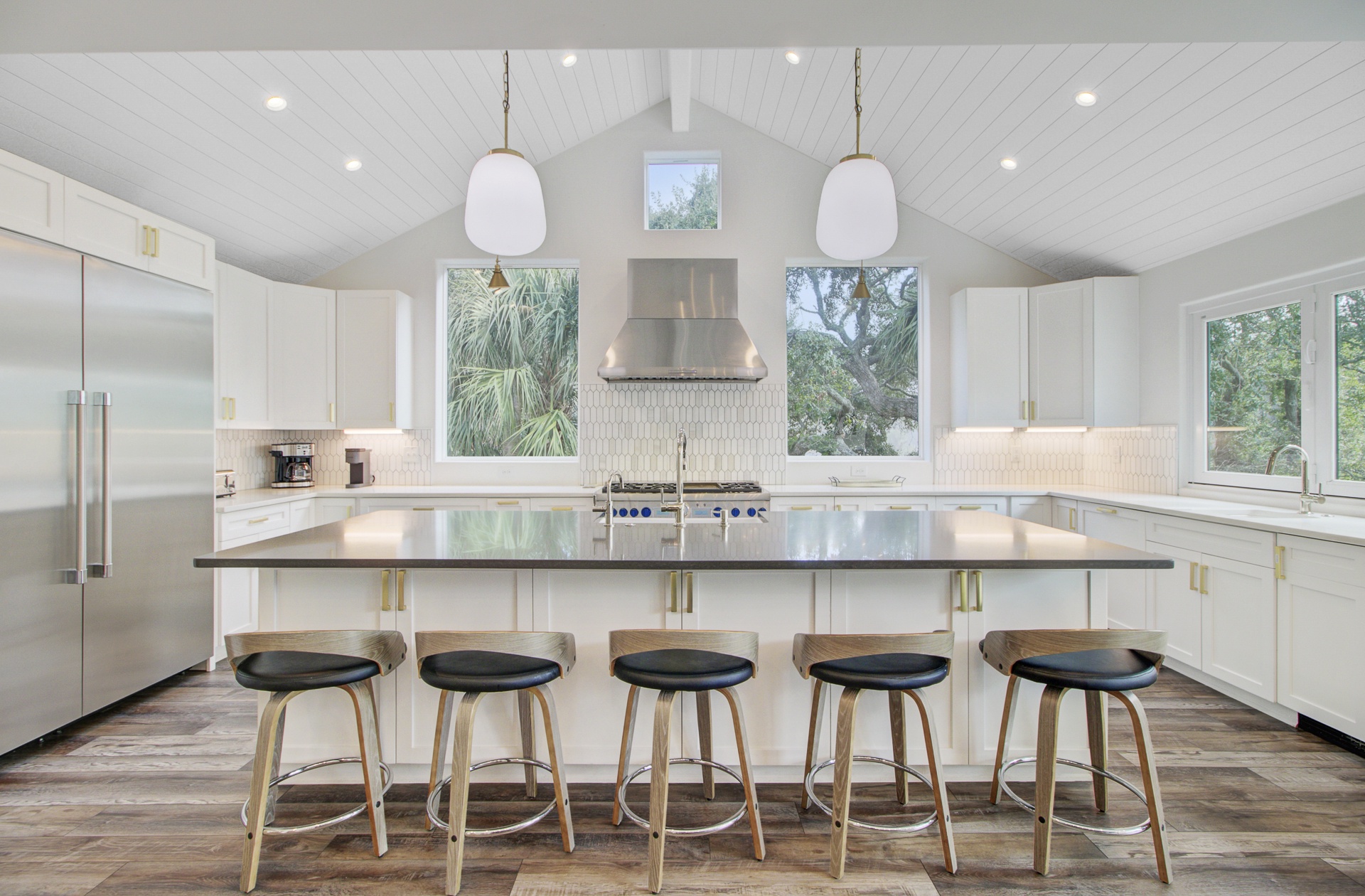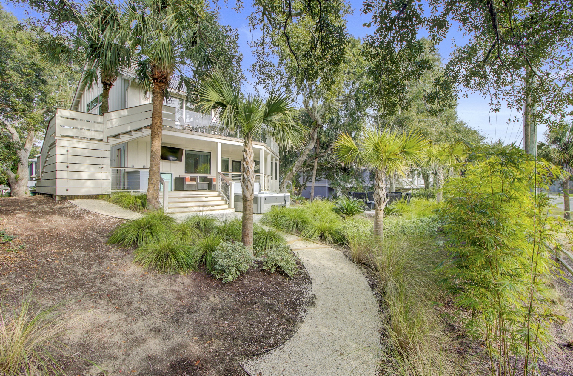 Experience island living in this stunning two-story, 3,025 sq. ft. home located just a brief walk from the beach. With elegant interiors and multiple outdoor lounges, this retreat is perfect for families and groups.