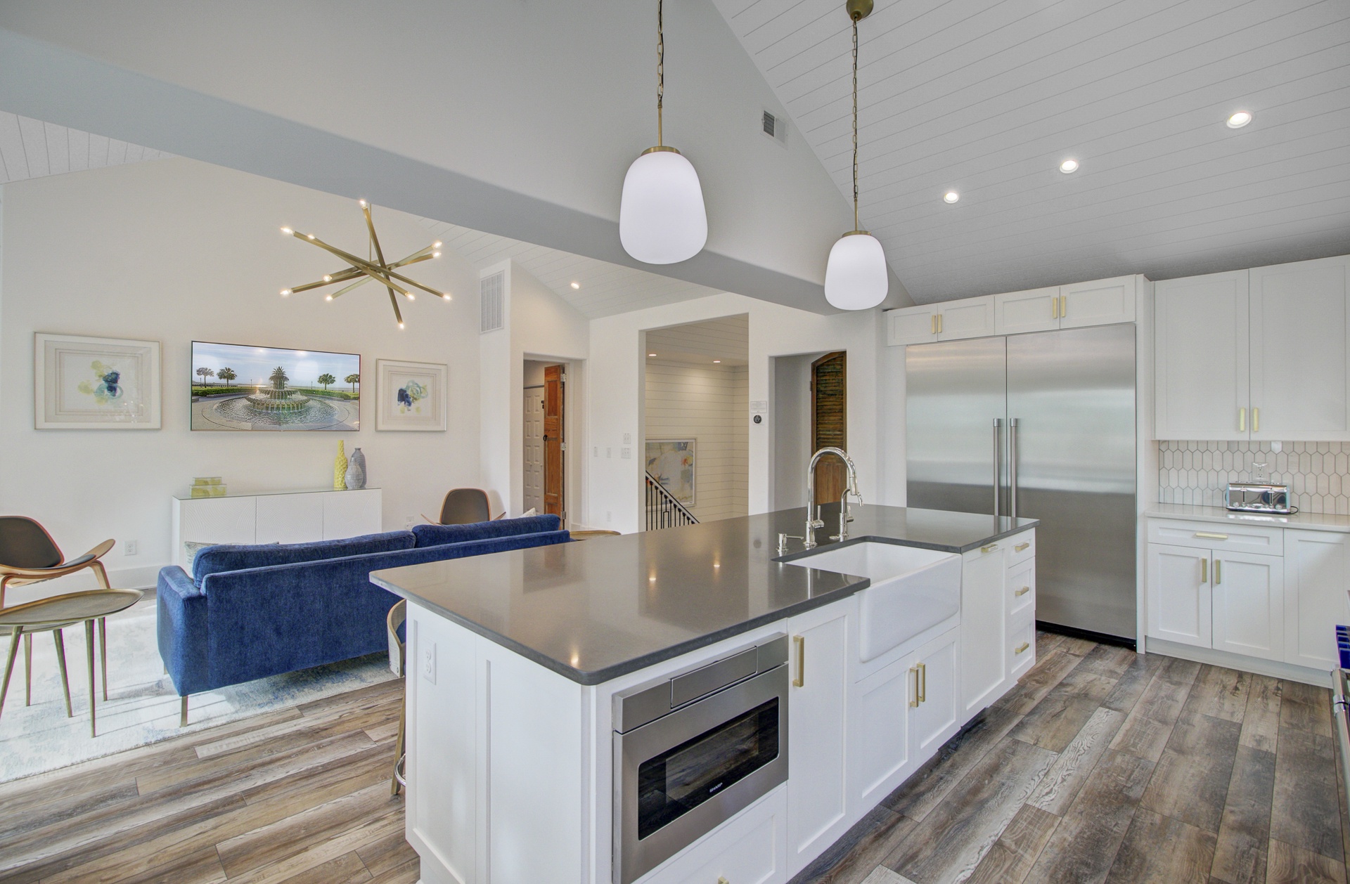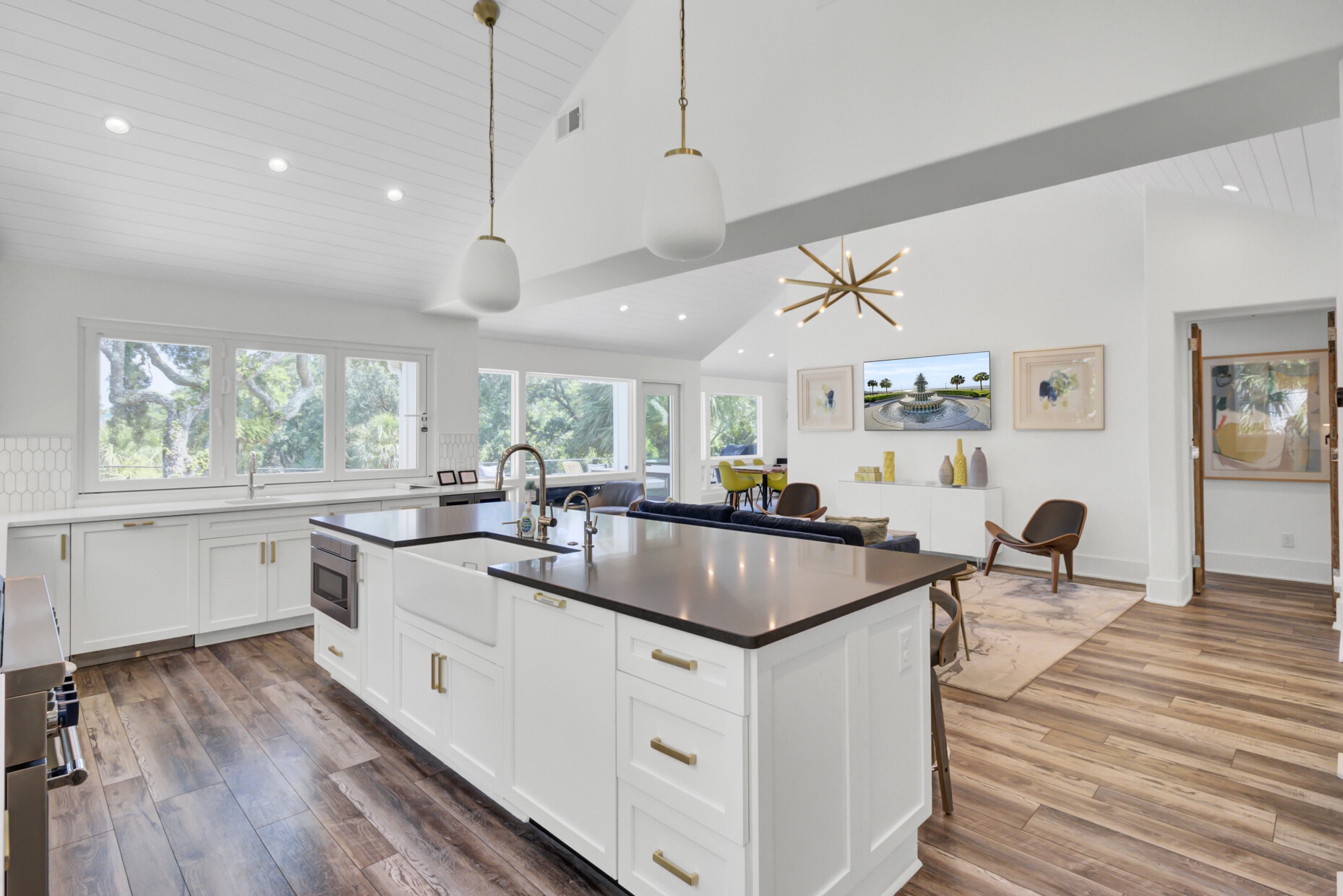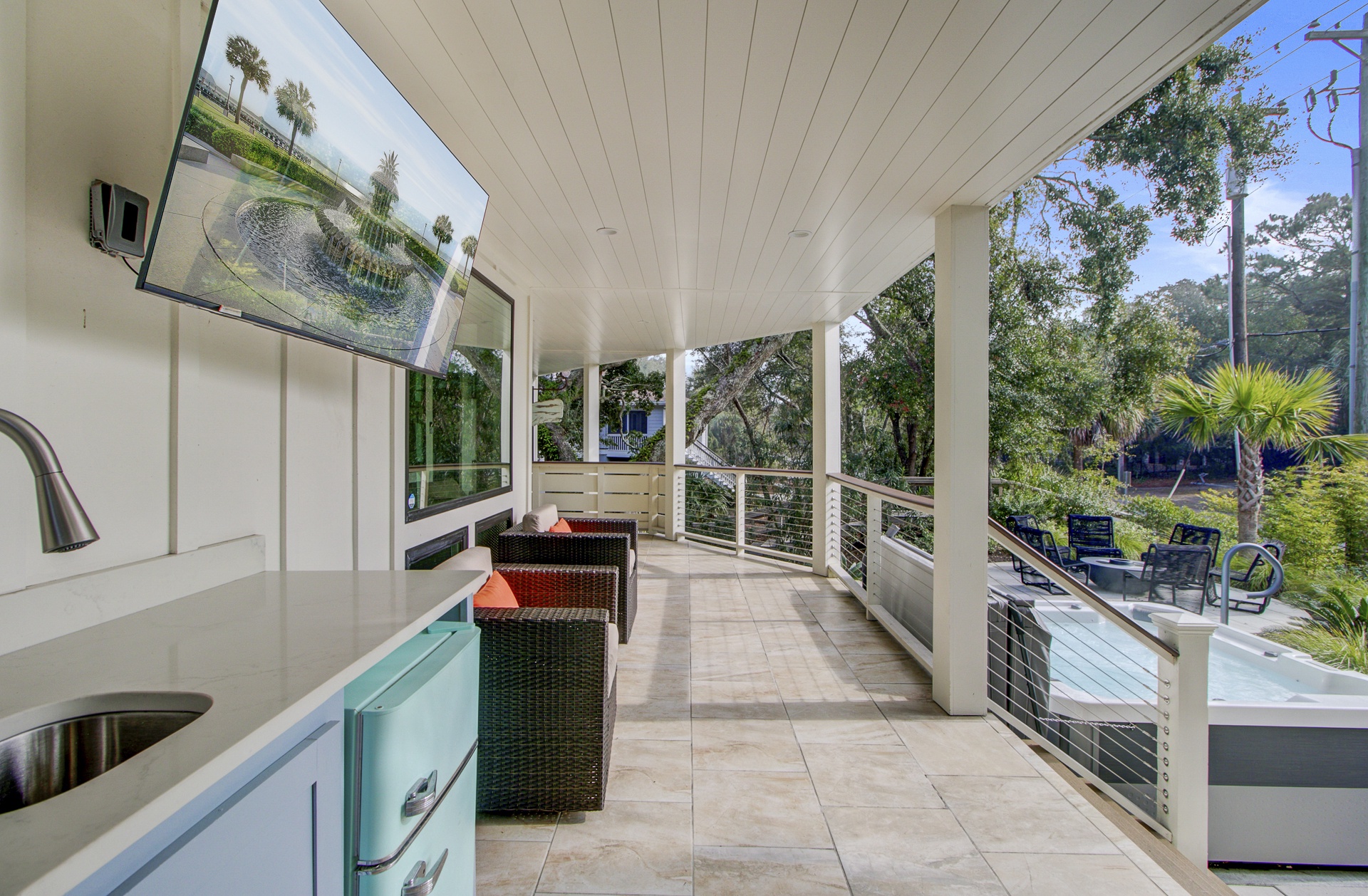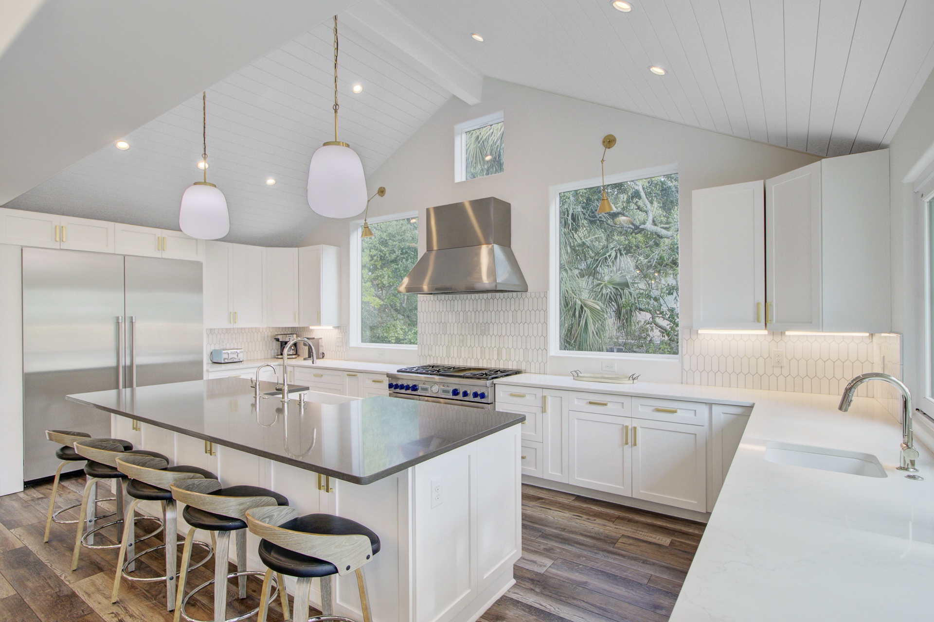 Experience island living in this stunning two-story, 3,025 sq. ft. home located just a brief walk from the beach. With elegant interiors and multiple outdoor lounges, this retreat is perfect for families and groups.
