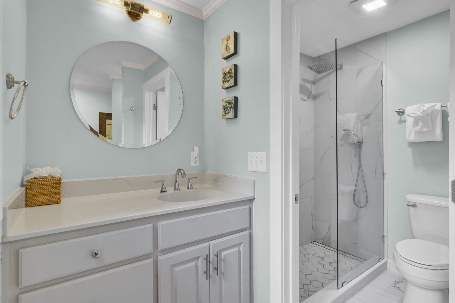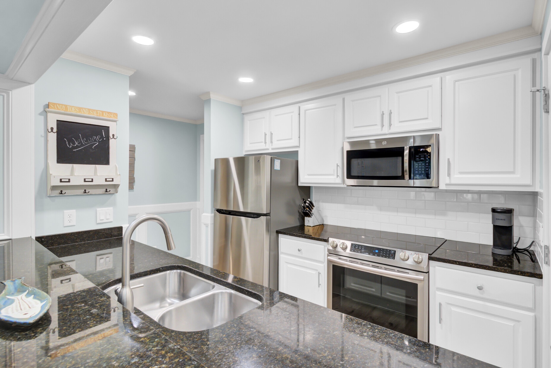 Tastefully decorated,very clean,love that there is no carpet.. everything we needed and short walk to the beach.Only negative is you can hear someone walking above you… since you are the first level …