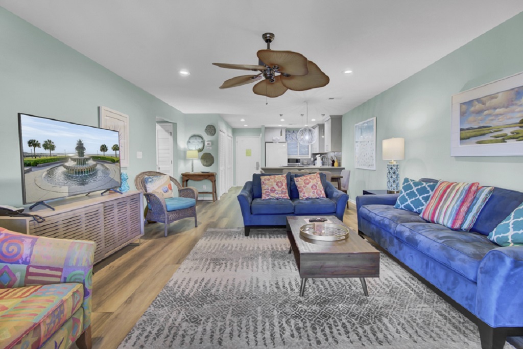 Located only minutes from the beach, this 1104 Sq. Ft. Mariners Walk unit features a complex pool and warm, family-friendly atmosphere. These charming condos provide an ideal setting for a relaxing coastal vacation with easy access to Wild Dunes’ sandy shores.