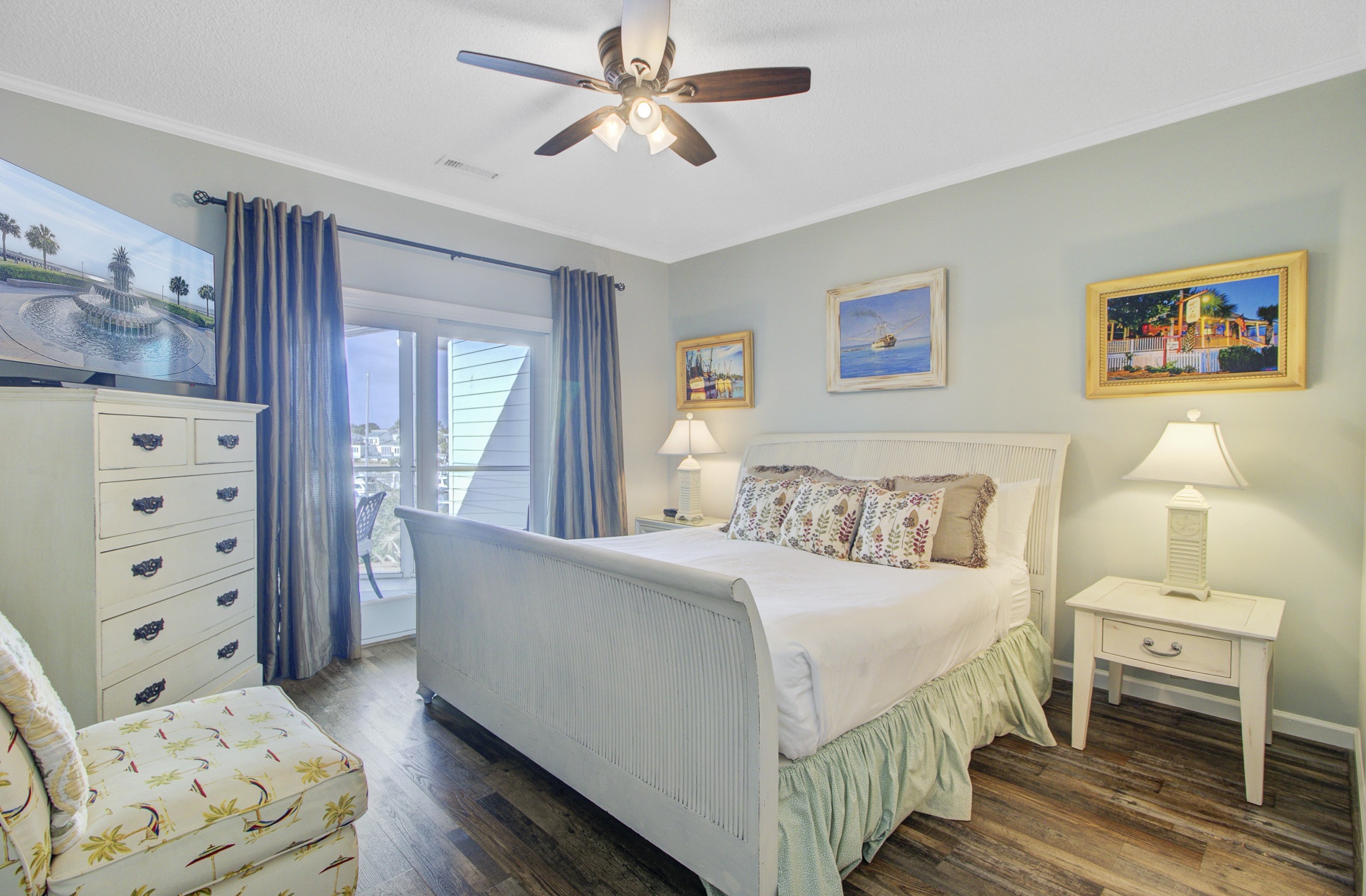Featuring captivating marina scenery, this 1273 Sq. Ft. Moorings Villas Condo boasts a complex pool and screened porches designed for leisurely afternoons. Combining comfort and elegance, these villas offer a perfect waterfront retreat within Wild Dunes’ vibrant community.