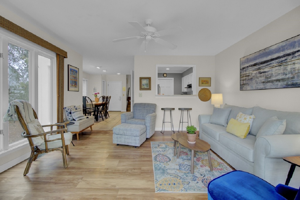 This is a spot on the “Wild Dunes Resort” and your stay is fully inclusive to all the resort has to offer. So look up the resort and all its amenities are available to you. That made this a wonderful stay for my family. There’s restaurants within walking distance, a convenience store, a gym, fire pit, easy beach access (5 minute walk, ask staff how to get there, don’t use Apple or Google Maps, the resort has a private entrance for guests). The unit itself is pretty large for a 2 bedroom. Three levels, ground floor with a sizeable living room and kitchen, second level with twin beds and a bathroom, and third level master bedroom. All of it very nice. There’s no view of the beach if that matters to you, but there’s a creek out back you can look at. Also, the beach is super close. Friendly staff. Huge resort. Really, the resort is what you’re paying for, and it’s awesome.