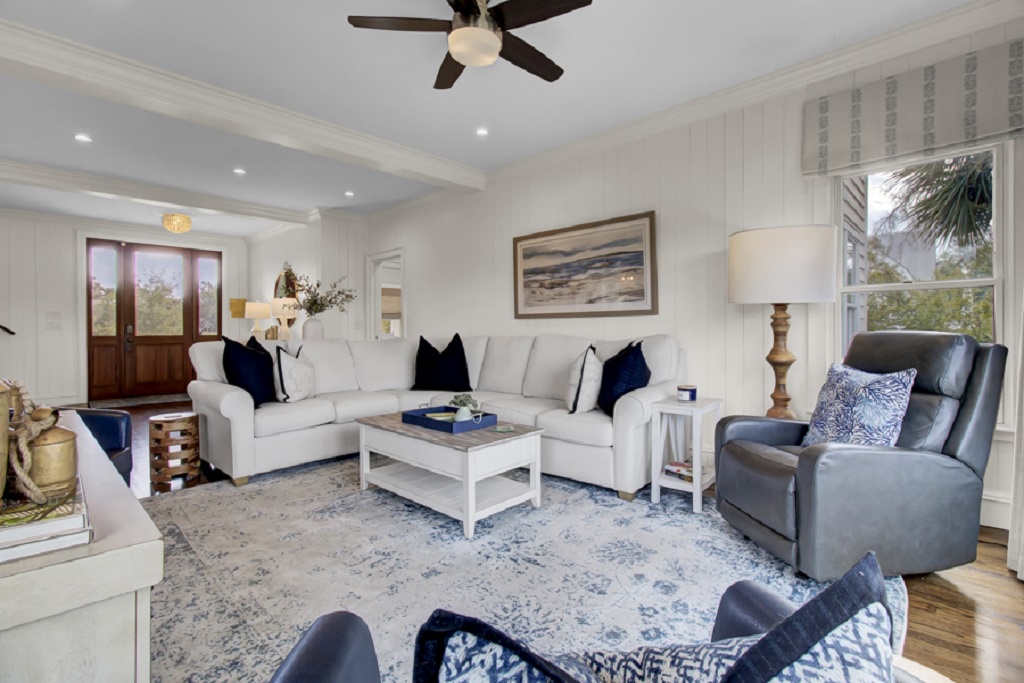 Experience island living in this stunning two-story, 2,594 sq. ft. home located just a short walk from the beach. With elegant interiors and a private deck, this retreat is perfect for families and groups.